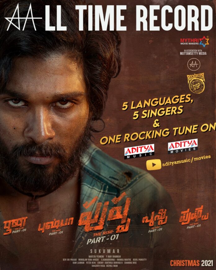 ఐదు భాషల్లో పుష్ప ఆడియో విడుదల చేసిన ప్రముఖ మ్యూజిక్ కంపెనీ ఆదిత్య మ్యూజిక్