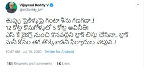 గంటా శ్రీనివాస్ విద్యాశాఖ మంత్రిగా 12 కోట్ల రూపాయల కొనుగోళ్లలో.. ఐదు కోట్ల రూపాయలు అవినీతికి పాల్పడ్డారని చెబుతున్నారు సాయిరెడ్డి. విద్యార్థులకు సైకిళ్ల కొనుగోళ్లలో భారీ అవినీతి జరిగిందని.. ఎస్ కె బైక్ కంపెనీని బ్లాక్ లిస్ట్ లో పెట్టినా కూడా ఆ కంపెనీ నుంచే కొనుగోలు చేశారని విజయసాయిరెడ్డి ఆరోపించారు. తుప్పు పట్టిన సైకిళ్లపై గంటా శీను గణగణ అంటూ సాయిరెడ్డి తనదైన సెటైర్ వేశారు! దీంతో… ఏసీబీ రంగంలోకి దిగితే “గంటా ఇంటి గంట” ఏ క్షణమైనా మోగొచ్చనే కామెంట్లు ఆన్ లైన్ వేదికగా హల్ చల్ చేస్తున్నాయి. మొత్తానికి శుక్రవారం వస్తుంది అంటే టీడీపీ నేతల్లో దడ పుట్టిస్తోంది అని మీడియా వరాల్గాలో సమాచారం.