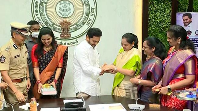 On the event of Raksha Bandhan, Home Minister Sucharita, MLA Vidadala Rajini, Women’s Commission Chairperson Vasireddy Padma tied rakhi to CM YS Jagan.