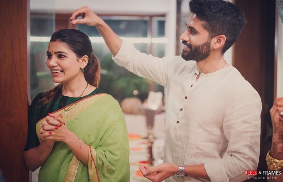 A lovable snap of Chaitu and Samantha from the wedding collection of Rana Daggubati was posted by Samantha on Instagram and it is making waves over the webThe picture alone reveals about their magical bonding.Chaitu was spotted blessing Samantha and the actress looked smiling. Samantha has taken up using handloom clothes and she has been practicing the same from the past few years during her public appearances. Chaitu is busy with Love Story and Samantha is yet to report her next film formally.