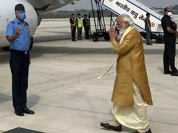 Prime Minister Narendra Modi left from Delhi to Uttar Pradesh’s Ayodhya for the ‘Bhumi Pujan’ of Ram Mandir.The Prime Minister, dressed in a traditional attire (dhoti and kurta), departed from Delhi in a special aircraft.